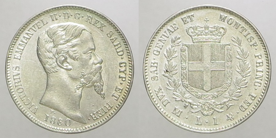 59. SAVOIA. Vittorio Emanuele II, re di Sardegna (1849-1861). Lira 1860 Milano. P.416. q.FdC/FdC, conservazione particolare...€.600,00.