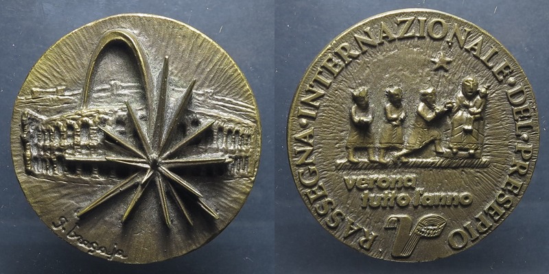 84. --. Medaglia fusa 1985 in AE mm.55 (2° Rassegna internazionale del Presepio). Opus: G. Bagaja. FdC, con certificato di garanzia...€.55,00.