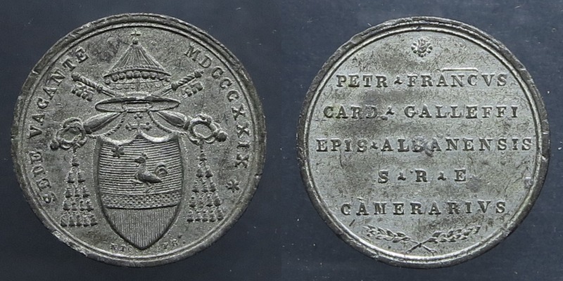 12. SEDE VACANTE 1829. Medaglia in peltro (o metallo bianco) mm.30 (Camerlengo P.F. Galeffi). Opus: Niccolò Cerbara). Boccia 85. q.SPL...€.50,00.