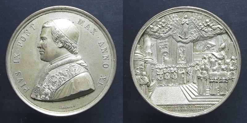 18. --. Medaglia ovale 1854-IX in AE (?) 43x26 con appiccagnolo (per la proclamazione del dogma dell’ Immacolata Concezione, (8 Dicembre). Opus: C. Jehotte. Ottimo SPL...€.30,00.