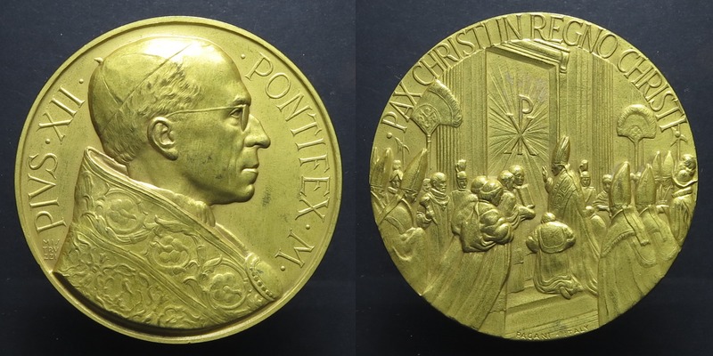 35. PIO XII (1939-58). Medaglia s.d. (1950) in AE dorato mm.6 (per l’ Anno Santo). Opus: Mistruzzi. SPL...€.60,00.