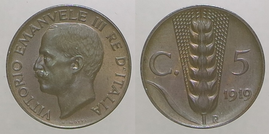 17. SAVOIA. Vittorio Emanuele III. 5 centesimi 1919. P.898. FdC...€.35,00.