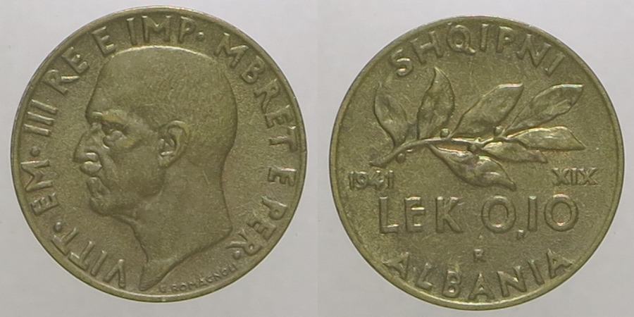 19. SAVOIA. Vittorio Emanuele III. 0,10 lek 1941-XIX (per l’Albania). P.1006. Ottimo SPL...R.€.125,00.
