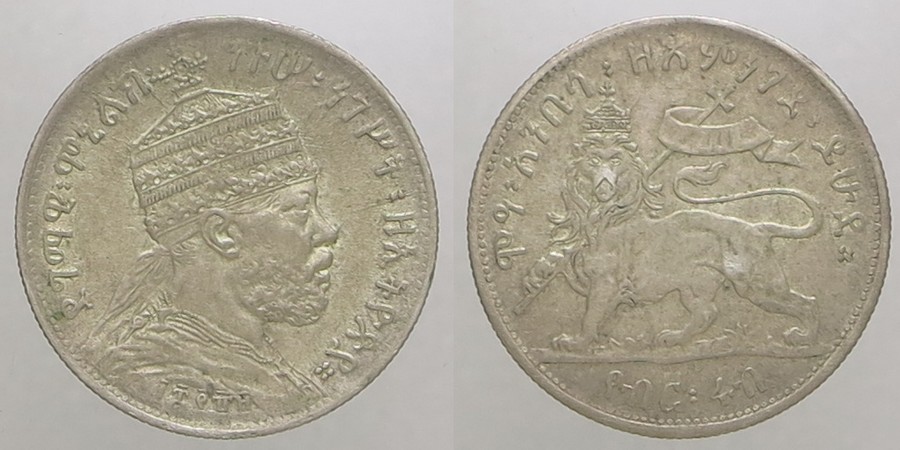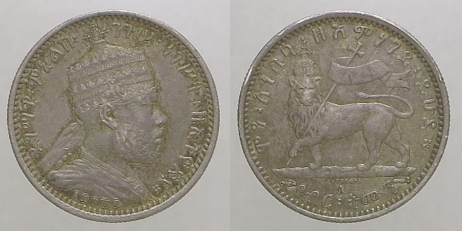 21. ETIOPIA. Menelik II (1889-913). Quarto di birr EE1889. KM.14. q.SPL/ottimo BB...€.75,00.