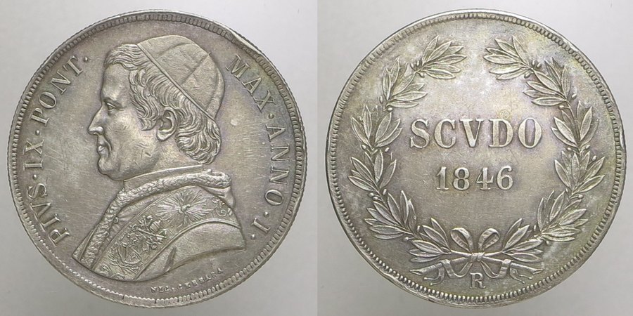 24. ROMA. Pio IX (1846-48, I periodo). Scudo 1846-I. Pagani 309. SPL, colpetti sui bordi, fondi lucenti...R.€.200,00.