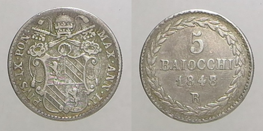 30. ROMA. Pio IX. 2 baiocchi 1848-III. P.325. BB+, lievi colpetti sui bordi...€.35,00.