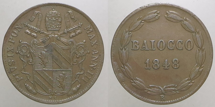 34. ROMA. Pio IX. Baiocco 1848-III. P.331. q.SPL, colpetto sul bordo...€.35,00.