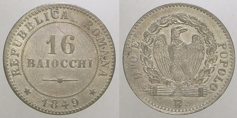 40. ROMA. II Repubblica romana. 16 baiocchi 1849. P.340. q.SPL...€.150,00.
