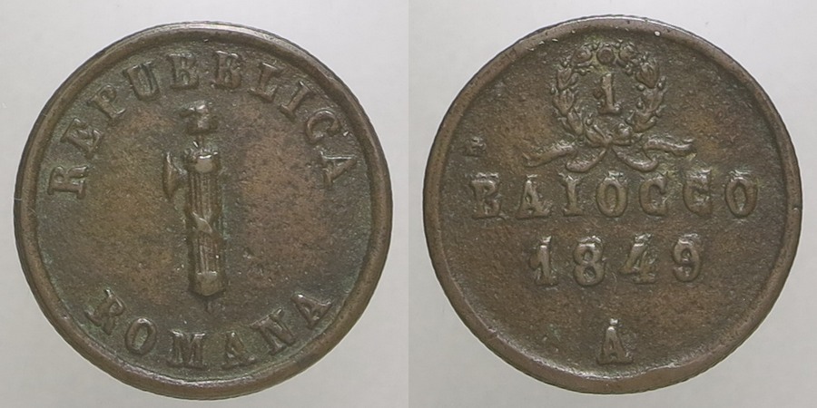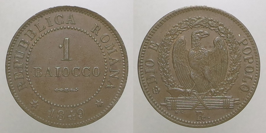 46. ROMA. II Repubblica romana. Baiocco 1849. P.344. q.SPL/SPL...€.45,00.
