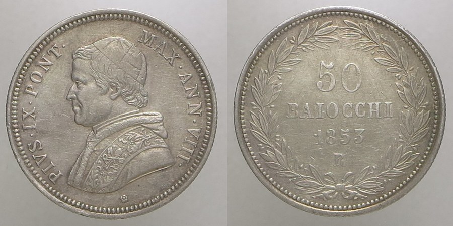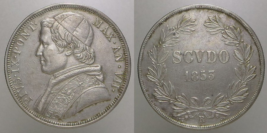 51. ROMA. Pio IX. Scudo 1853-VII. P.394. q.SPL/ottimo BB...€.160,00.