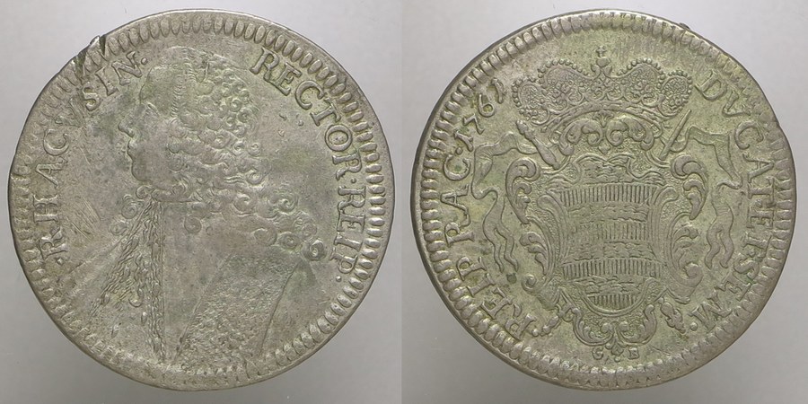 7. RAGUSA. Repubblica. Tallero rettorale 1761. CNI.273. Davenport 1639. Ottimo BB, due spaccature di conio sul bordo...€.115,00.