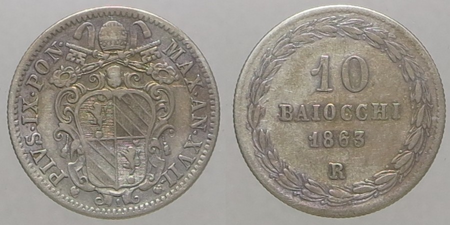81. ROMA. Pio IX. 10 baiocchi 1863-XVII. P.446. BB...€.25,00.