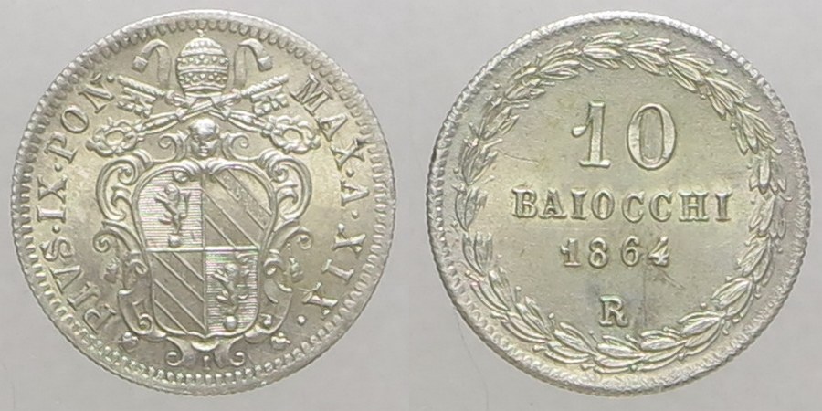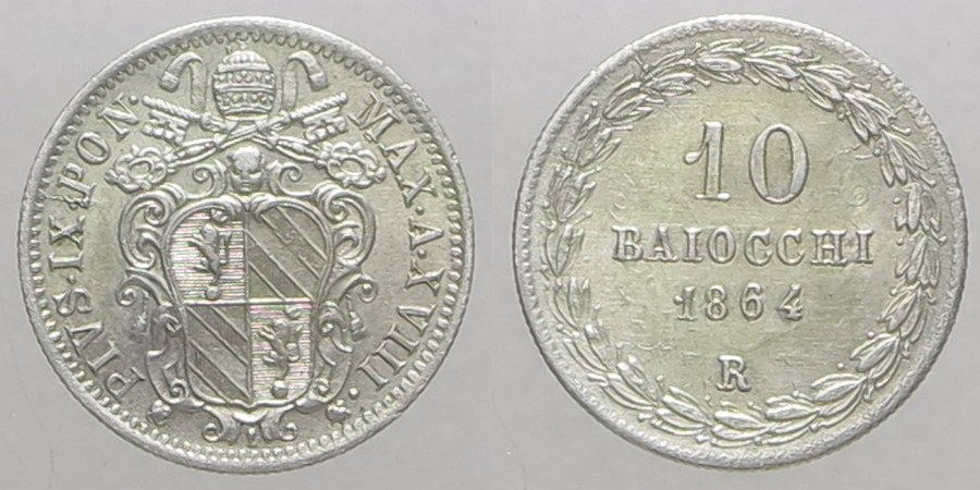 83. ROMA. Pio IX. 10 baiocchi 1864-XVIII. P.448. Ottimo BB...€.35,00.