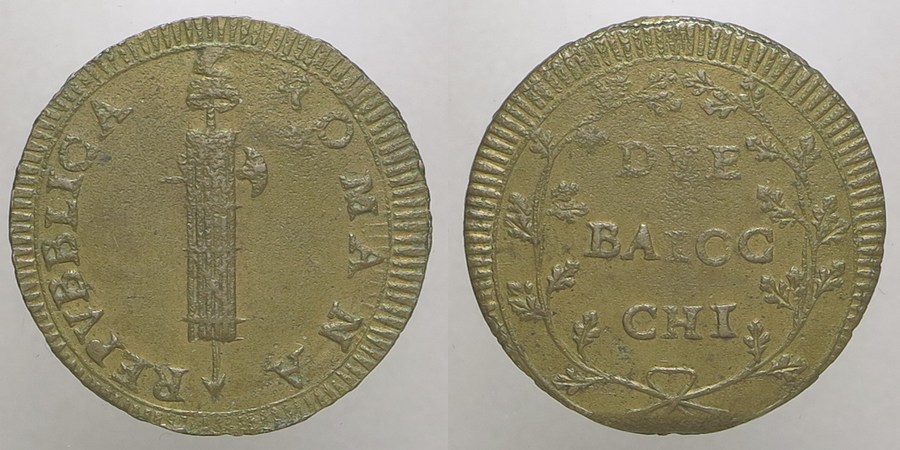 9. ROMA. Repubblica romana (1798-99). Due baiocchi s.d. P.28b. Bruni 9 (NC). Peso gr.13,66. Ottimo BB...€.65,00.